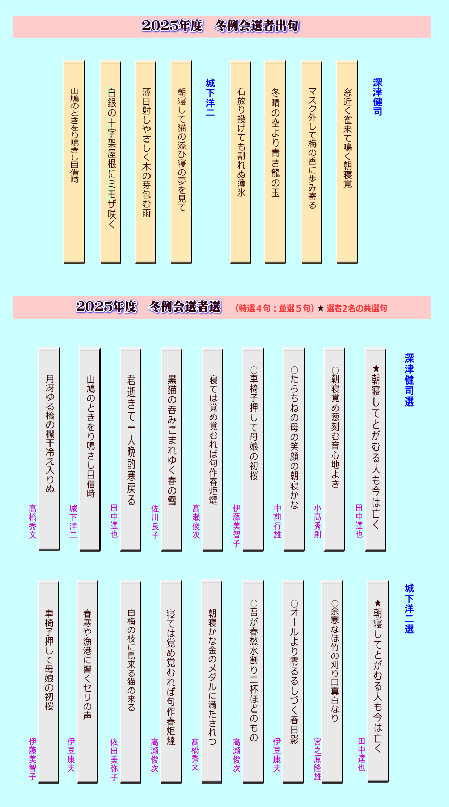 髙瀬・髙橋・田中・中前・半田・宮之原・依田(内、欠席投句5名)